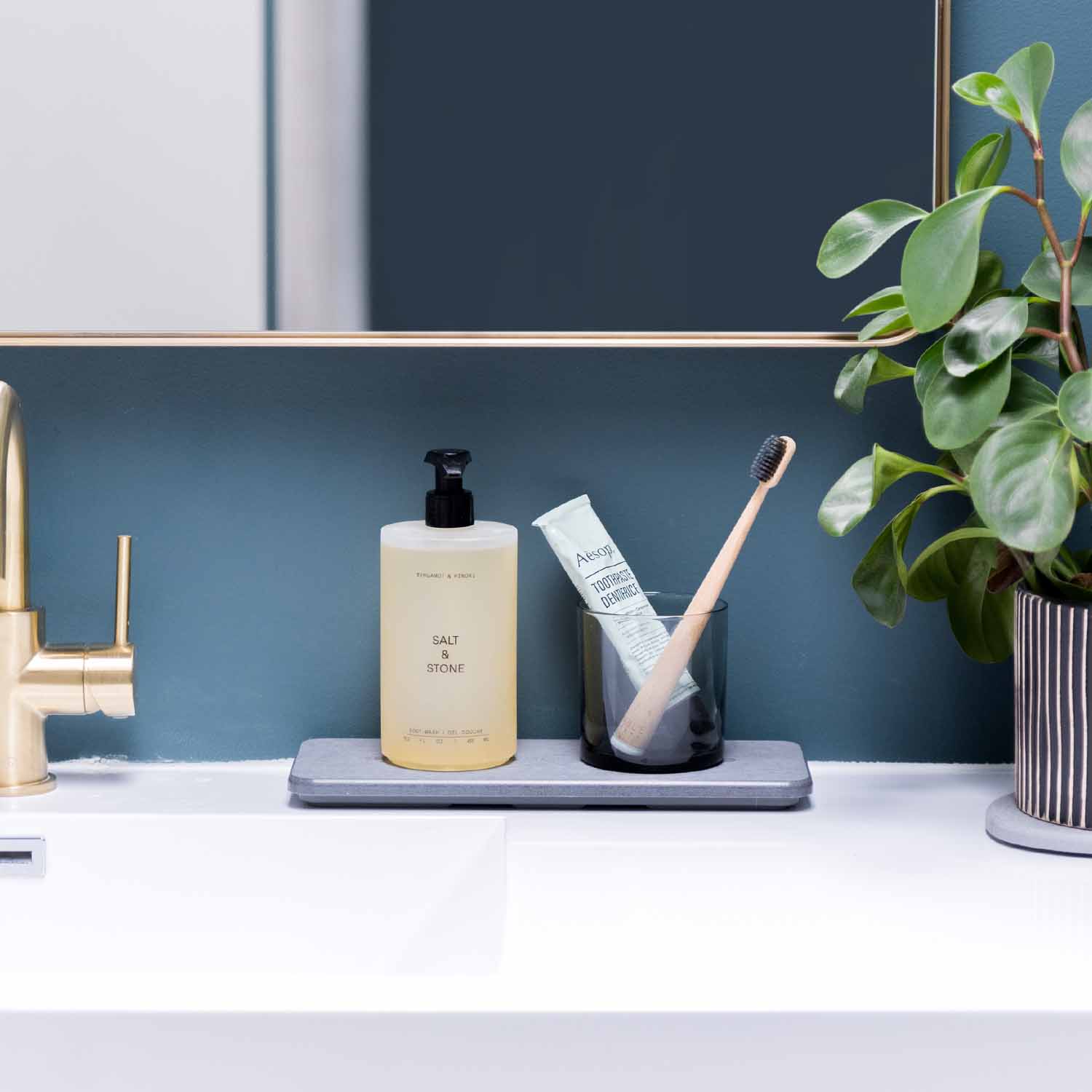 Tidy up with the Stone Sink Caddy, a chic organizer for your soaps, bottles and brushes that dries instantly. Its platform is made of our rapid-drying Diomat® technology that eliminates pooling water, keeping your counters clean and reducing the chance of mold forming.